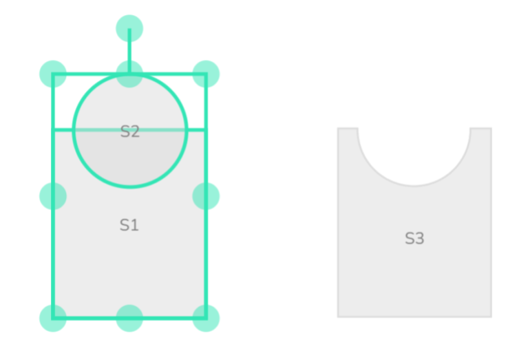 Subtracting two shapes using Difference operation: Here S2 is subtracted from S1 to get a new shape S3.