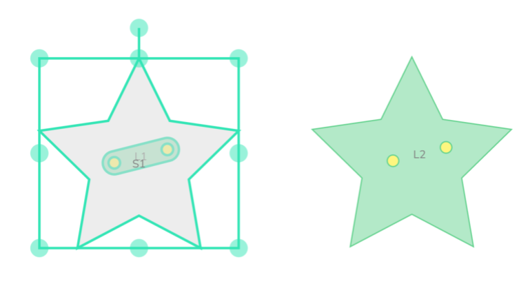 A star shape being converted into a star-shaped link with two moving pivot points