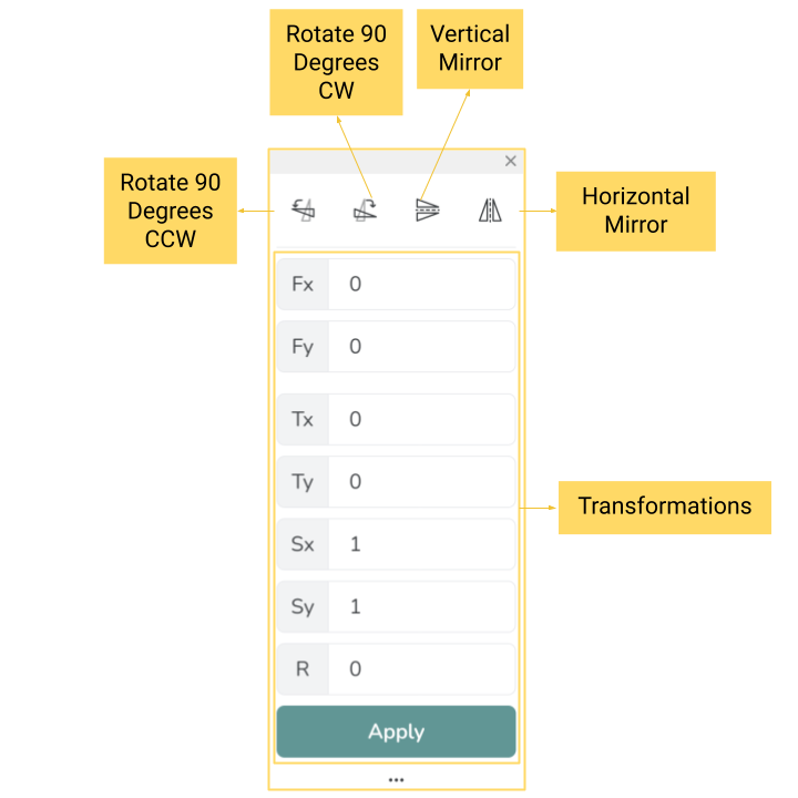 You’ve seen the transformations the buttons can apply, but the values can have a wider effect on the object. More transformations are available such as translation and scaling like stretching/shrinking. It is important to note that all three transformations require you to define a reference frame via Fx and Fy.